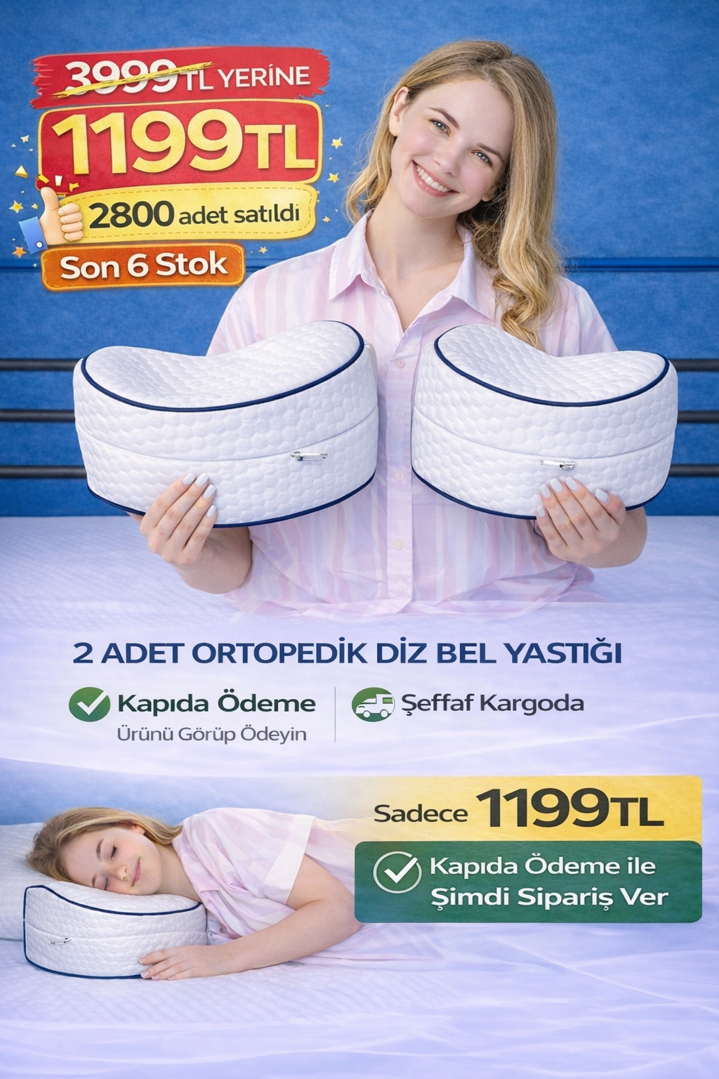 2 ADET ORTOPEDİK DİZ ARASI YASTIK